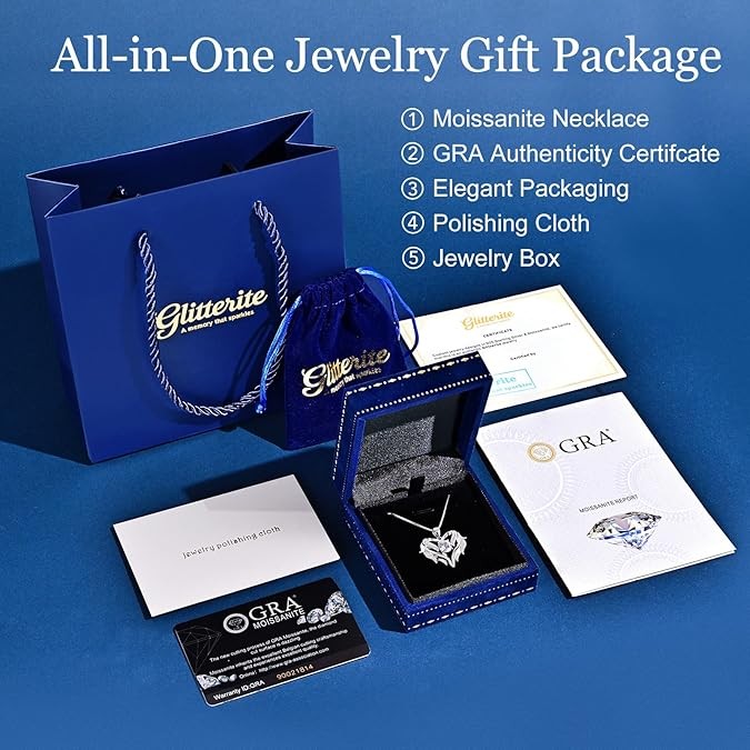 1-3 Carat Moissanite Heart Necklace for Women, 925 Sterling Silver Moissanite Pendant Necklace, Anniversary Present for Her, Birthday Gift for Wife, Diamond Jewelry Present for Girlfriend, Mom, Daught
