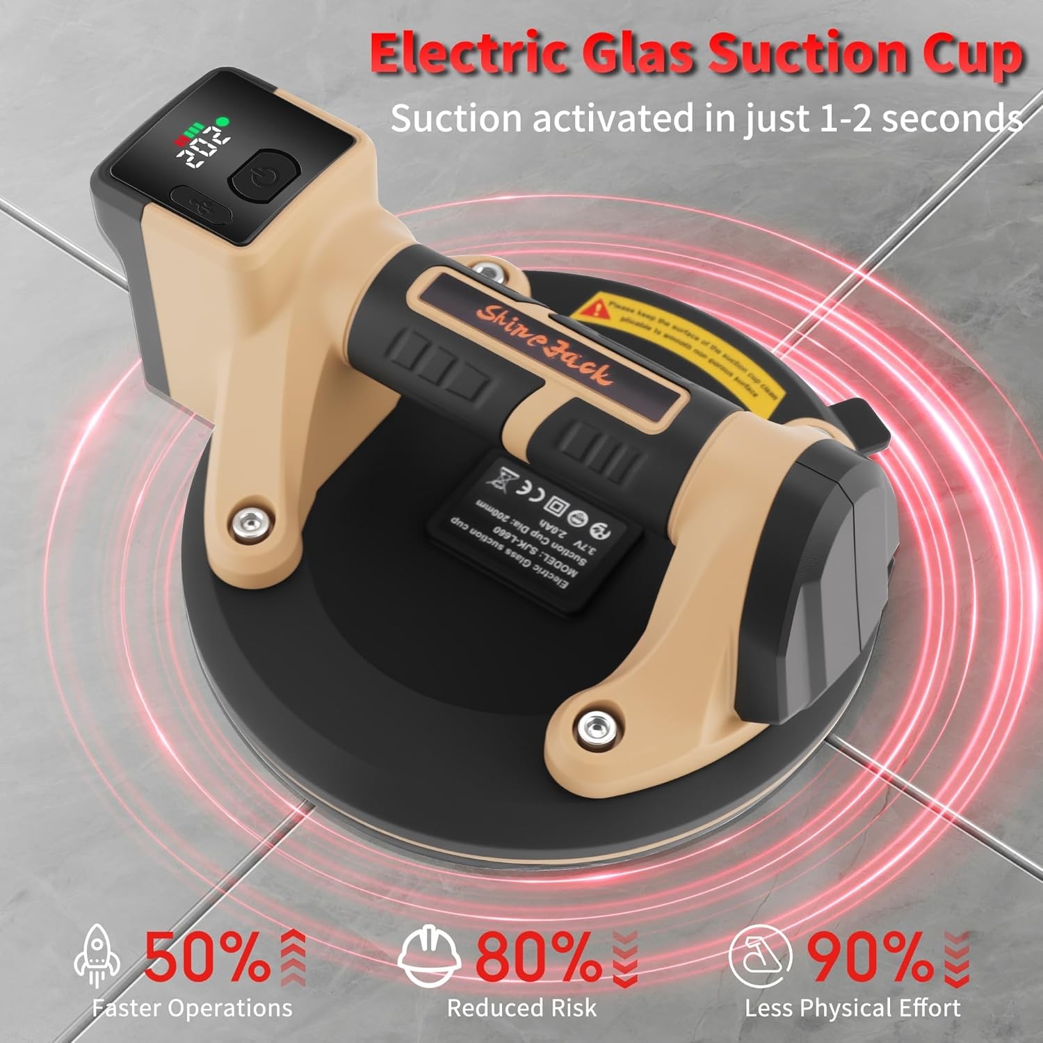 8“ Electric Heavy Duty Vacuum Suction Cup for Granite&Glass Lifting,Glass Suction Cup to Lift Large GlassMetalCeramic TileMarbleMDF,Hand-held Vacuum Lifter,600 lbs Load Capacity(2PCS)