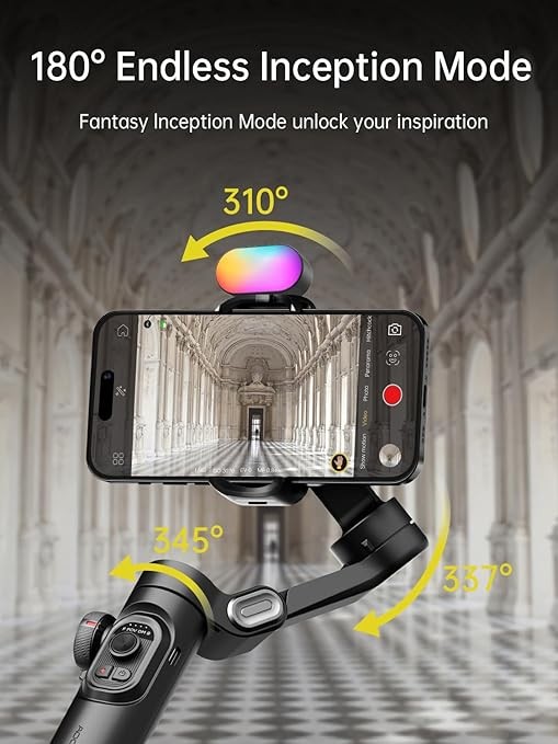 AOCHUAN Gimbal stabilizer for Smartphone,Gesture Control/face Tracking,Magnetic Fill Light,Foldable Handheld Phone Gimbal,3-axis stabilizer TikTok YouTube Vlog Recording XE kit