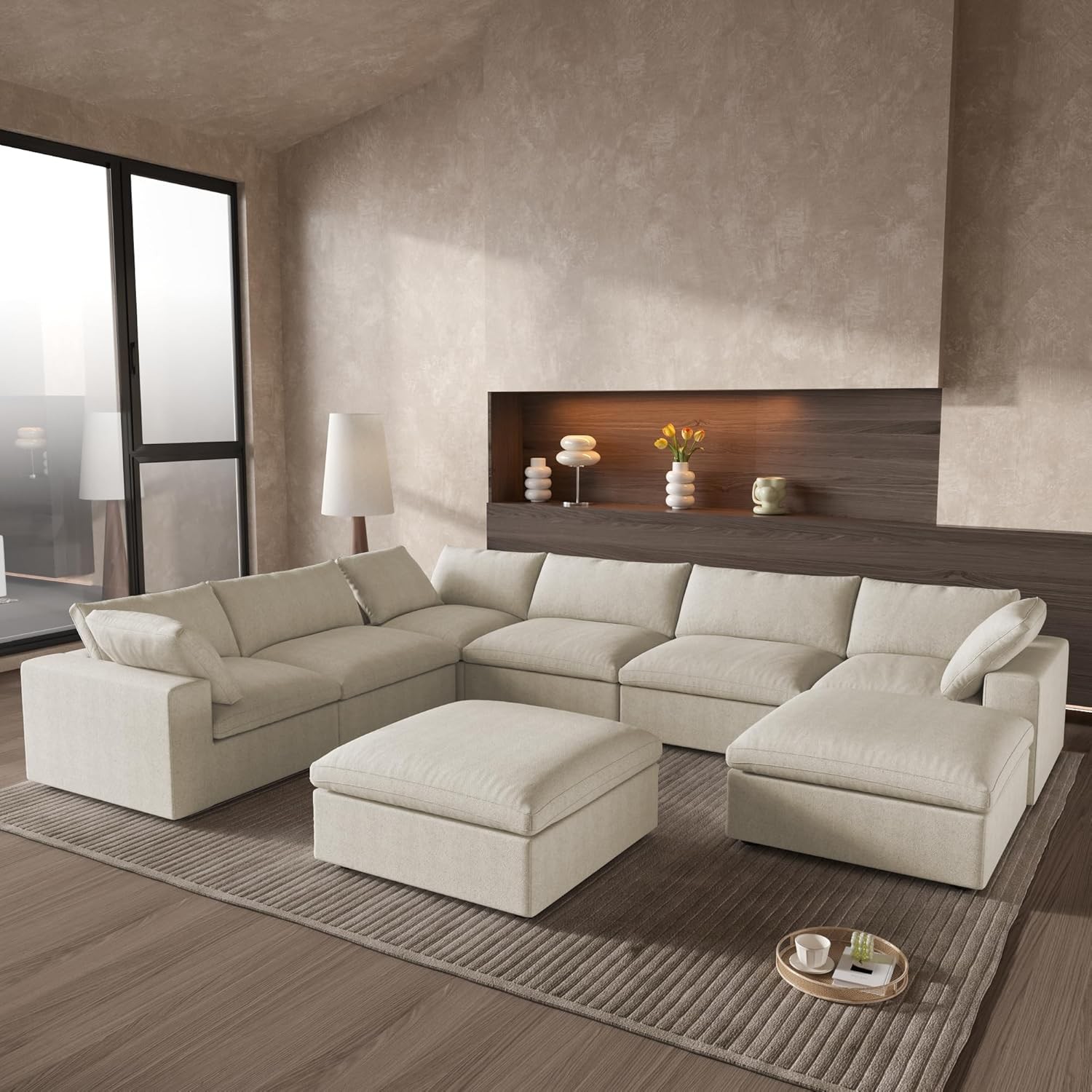 Cloud Couch Modular Sectional Sofa with Storage Ottomans,Oversized Down Filled 8 Seater Convertible Sectional Sofas, Khkai Wide Deep Seat Couch for Living Room,Covers Washable&Replaceable