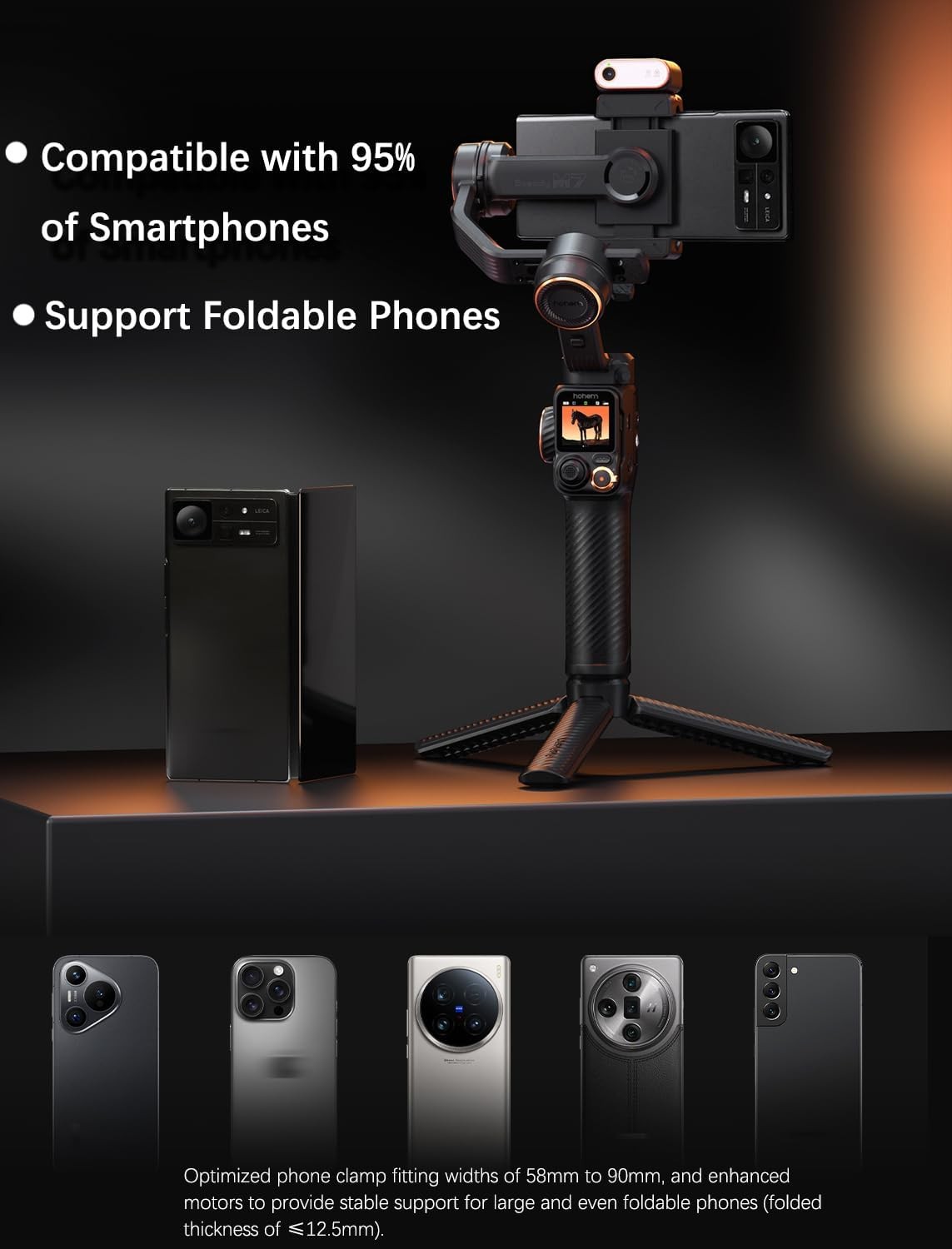 hohem iSteady M7 Gimbal Stabilizer for iPhone, 3-Axis Smartphone Gimbal with Magnetic AI Tracker Fill Light, Detachable Touchscreen Remote Controller, Built-in Extension Rod, 500g Payload