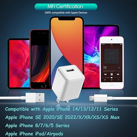 iPhone Charger,Extra Long 2 Pack 10FT Lightning Cable Cube i Phone 12 Charger Charging Transfer Cord Cable with USB Plug Wall Charge Block Travel Adapter for iPhone 14/13/12/11/SE2022/8/7/XS/XR/X/iPad