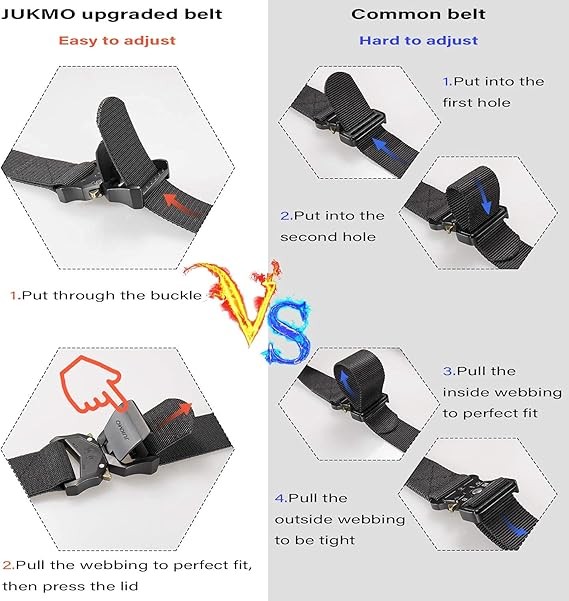 JUKMO Tactical Belt, Military Hiking Rigger 1.5" Nylon Web Work Belt with Heavy Duty Quick Release Buckle