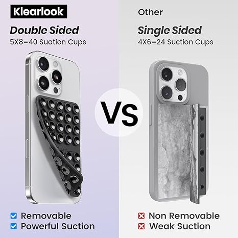 Klearlook Silicone Suction Cup Phone Case Mount Double Sided, Silicon Sticky Phone Grip with Higher Suction for Cell Phone, Hands-Free Phone Accessories Holder for Selfies and Videos, Black