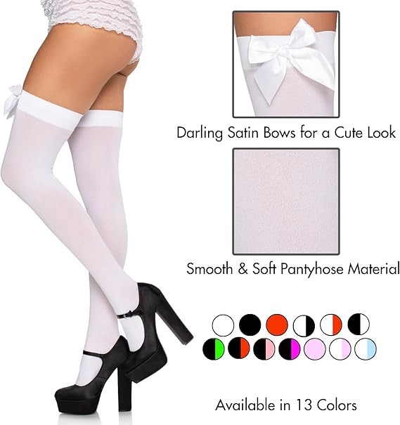 Leg Avenue womens Satin Bow Accent Thigh Highs