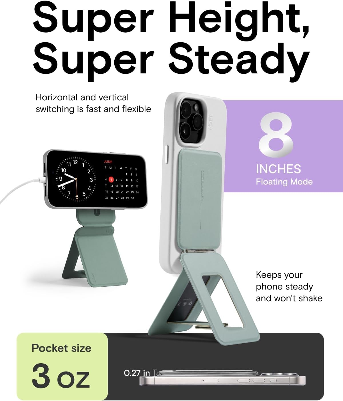 MOFT Phone Tripod Stand Selfie Stick for iPhone, Multi-Angles iPhone Stand, Lightweight & Portable Phone Holder, Strong Magnets, MOVAS Vegan Leather, Travel Essentials, Seafoam (Without Card Slot)