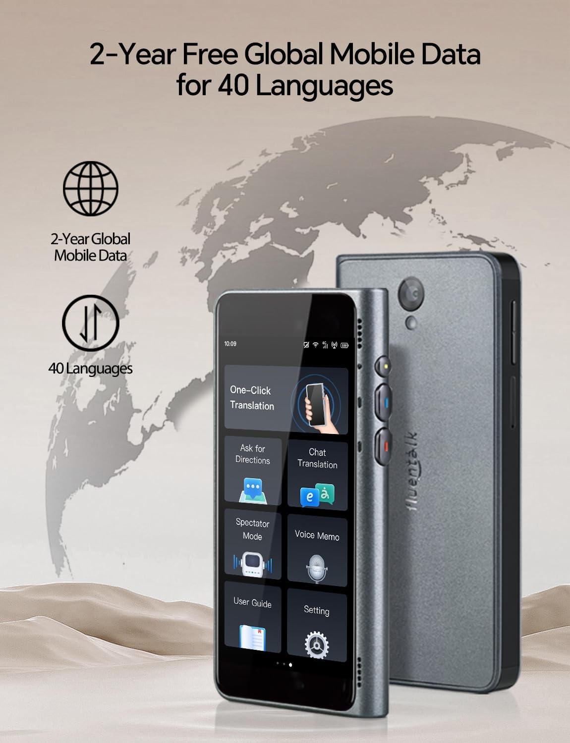 Timekettle Fluentalk New T1 Translator Device Supports 40 Languages, 31+ Offline Language Pairs, Photo Translation, No WiFi Needed, 2-Year Global Data, 4" HD Screen for Travel