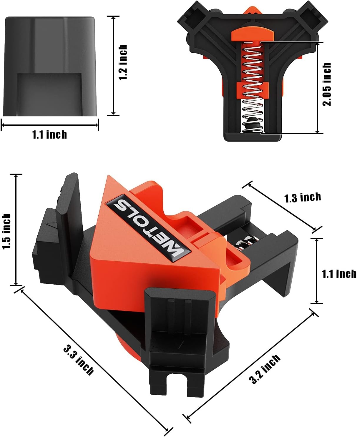 WETOLS Corner Clamp for Woodworking, 90 Degree Right Angle Clamp, Wood Clamps, 4Pcs Adjustable Spring Loaded Woodworking Clamp, Gifts for Dad, Birthday Gifts for Men, Photo Framing, Orange