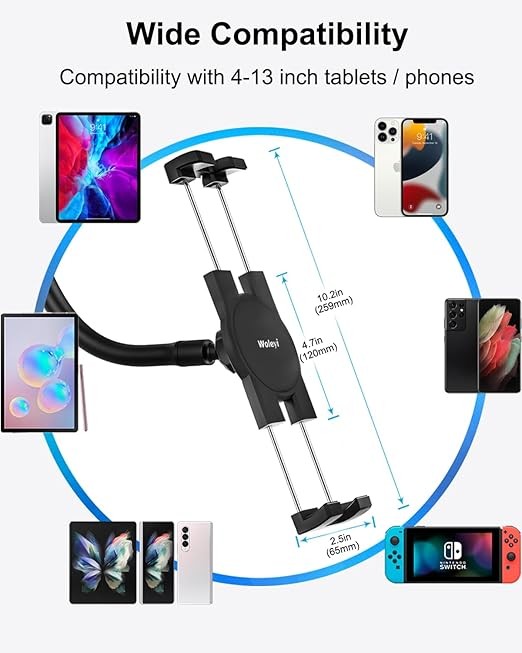woleyi Tablet Holder for Car Dashboard Windshield [Gooseneck Long Arm] Suction Cup iPad Holder for Car, Car Tablet Mount Compatible with iPad Pro Air Mini, Galaxy Tabs, Cell Phones, 4.7-13" Devices Vi