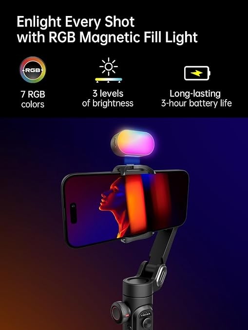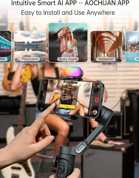 AOCHUAN Gimbal stabilizer for Smartphone,Gesture Control/face Tracking,Magnetic Fill Light,Foldable Handheld Phone Gimbal,3-axis stabilizer TikTok YouTube Vlog Recording XE kit