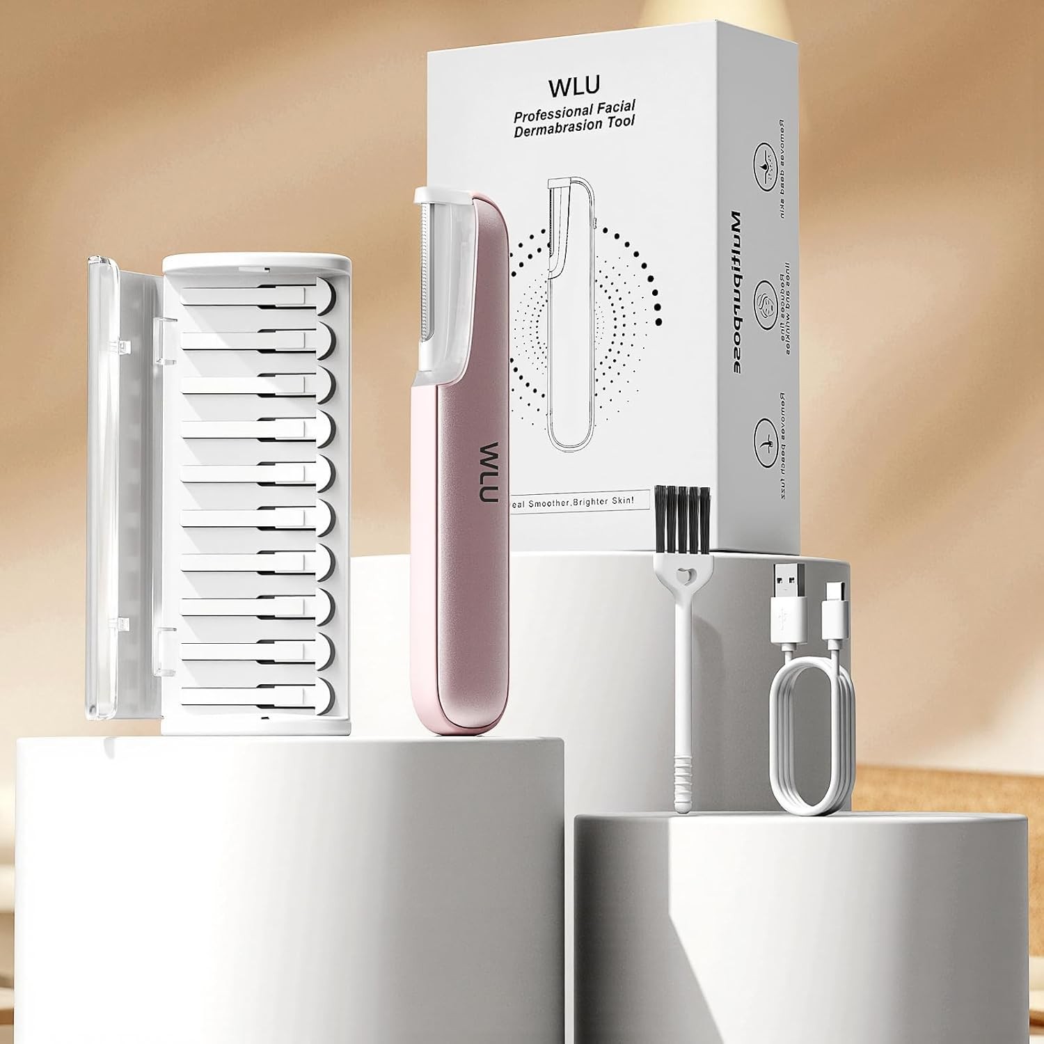 Dermaplaning Tool for Women Face - Edge Technology Sonic Dermaplane Razor for Facial Exfoliation & Peach Fuzz Hair Removal with 10 Refill Blades (Pink)