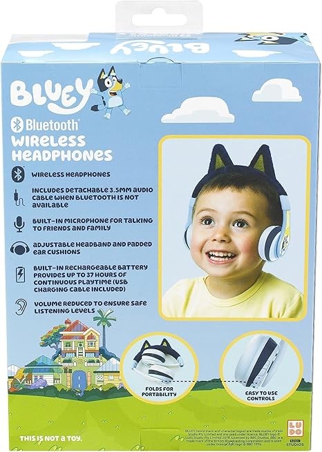 eKids Bluey Bluetooth Headphones for Kids, Wireless Headphones with Microphone Includes Aux Cord, Earphones for School, Home, or Travel, Ideal Bluey Halloween Costume