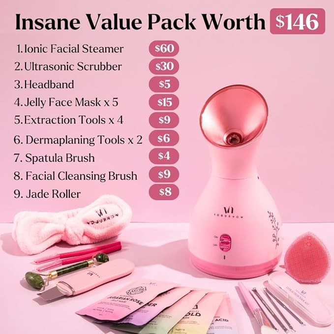Facial Steamer Spa Kit with Complimentary 17 Skin Care Tools | Face Steamer for Facial Deep Cleaning with Towel Warmer & Humidifier Mode| Self Care Gifts for Women, Spa Gifts, Birthday Gifts for Women