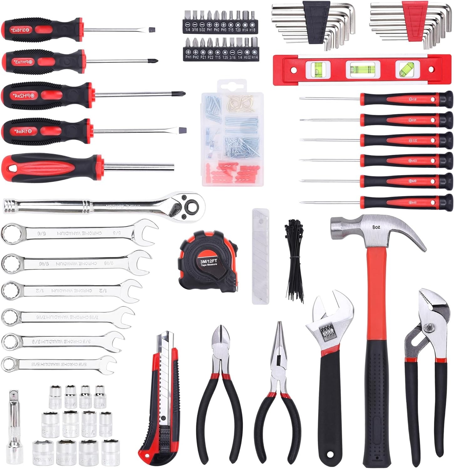 FASTPRO 236-Piece Home Repairing Tool Set, Mechanics Hand Tool Kit with 12-Inch Wide Mouth Open Storage Bag, Household Tool Set for DIY, Home Maintenance, Red