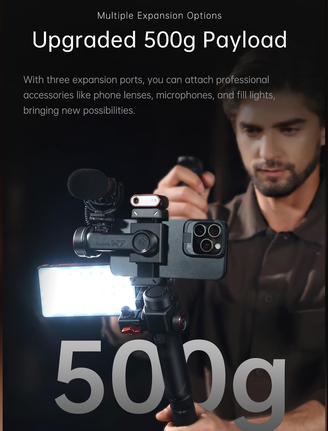 hohem iSteady M7 Gimbal Stabilizer for iPhone, 3-Axis Smartphone Gimbal with Magnetic AI Tracker Fill Light, Detachable Touchscreen Remote Controller, Built-in Extension Rod, 500g Payload