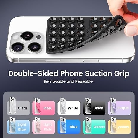 Klearlook Silicone Suction Cup Phone Case Mount Double Sided, Silicon Sticky Phone Grip with Higher Suction for Cell Phone, Hands-Free Phone Accessories Holder for Selfies and Videos, Black