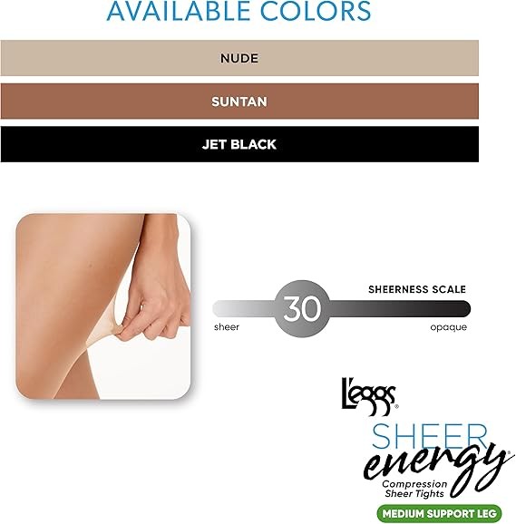 L'eggs Sheer Energy Women's Standard-Panty, Sheer Toe, Nylon Pantyhose