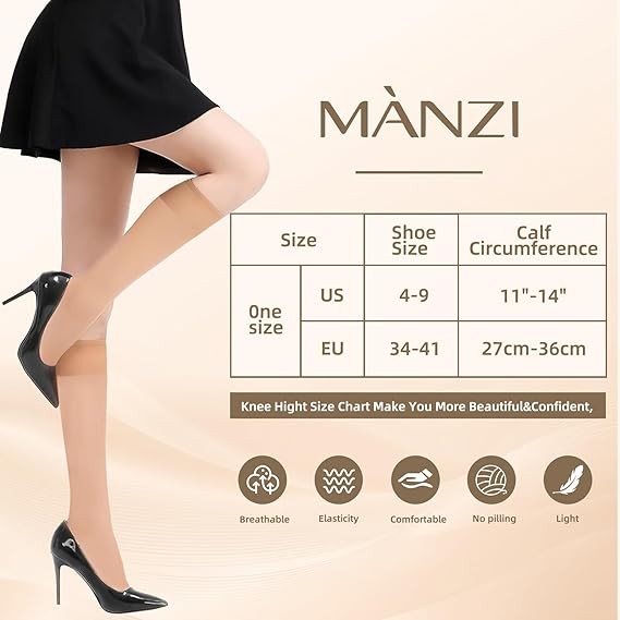MANZI 12 Pairs Lady's Sheer Knee High Stockings for Women