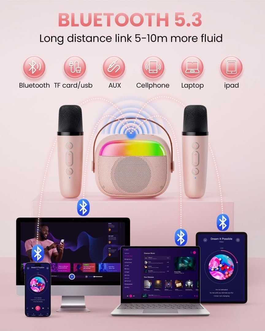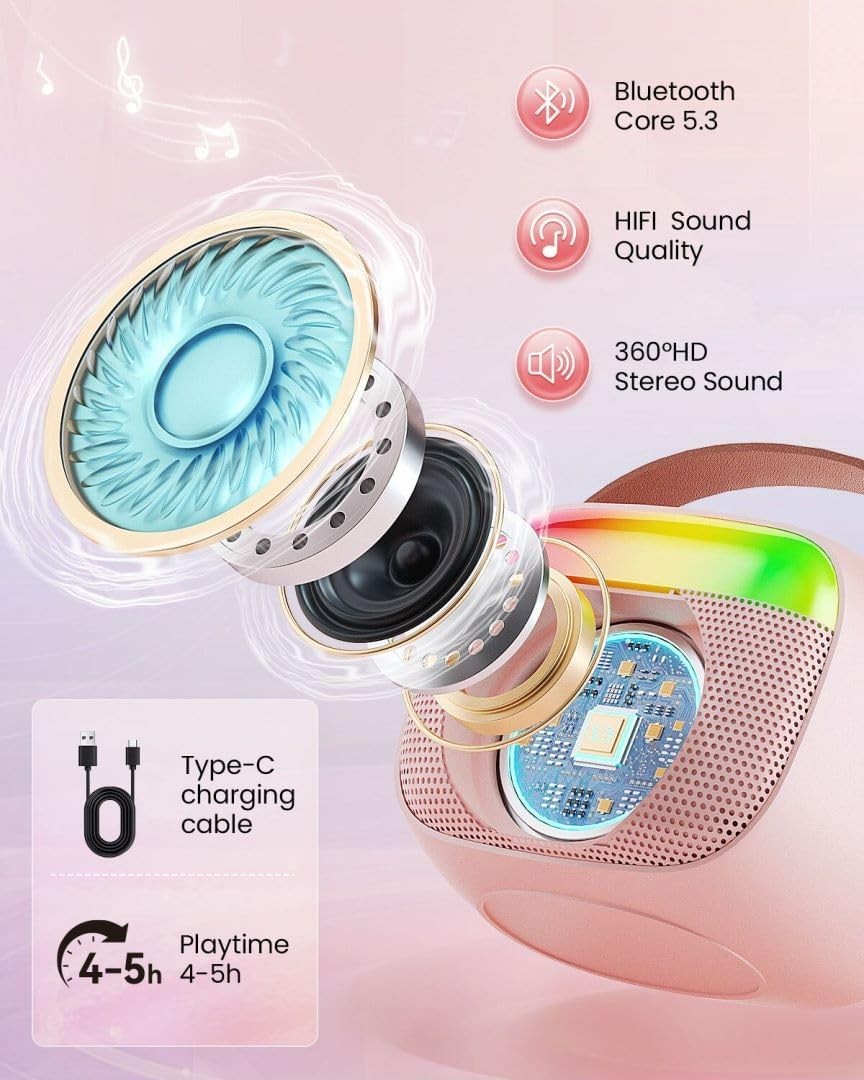 Mini Karaoke Machine for Kids, Toy for Girls Portable Bluetooth Speaker with 2 Wireless Microphones, Fashion Toy Gifts for Christmas Birthday, for 3 4 5 6 7 8+ Year Old Girls Gifts(Pink)