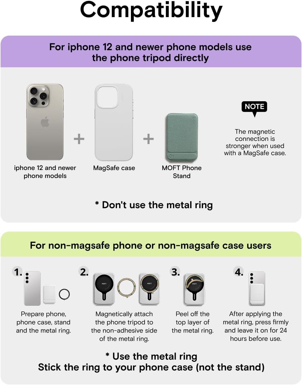 MOFT Phone Tripod Stand Selfie Stick for iPhone, Multi-Angles iPhone Stand, Lightweight & Portable Phone Holder, Strong Magnets, MOVAS Vegan Leather, Travel Essentials, Seafoam (Without Card Slot)