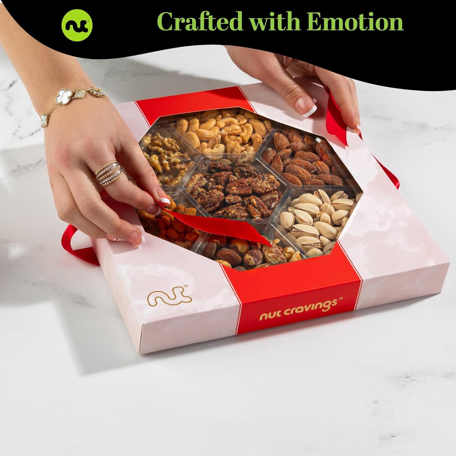 NUT CRAVINGS - Halloween Treats For Adults Mixed Nuts Gift Basket in Red Gold Box (7 Assortments, 1 LB) Holiday Xmas Christmas Food Arrangement, Healthy Snack Care Package, Food Assortments