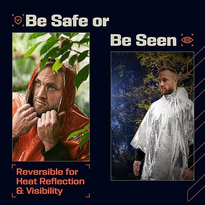 PREPARED4X Emergency Poncho and Mylar Blanket Liner - Waterproof, Wind-Resistant Outdoor Rain Poncho for Camping, Emergencies