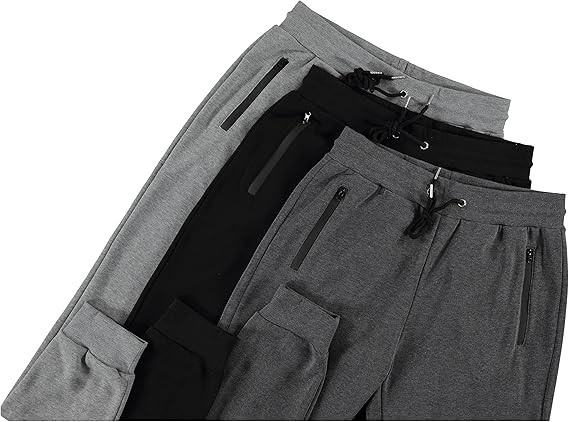 PURE CHAMP Mens 3 Pack Fleece Active Athletic Workout Jogger Sweatpants for Men with Zipper Pocket and Drawstring Size S-3XL
