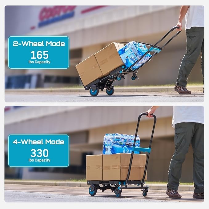SEESII 2-in-1 Folding Hand Truck Dolly, 330 lbs Max Capacity TPR Wheels Heavy-Duty Cart, 3-Gear Retractable Handle for Utility Move Shopping Delivery