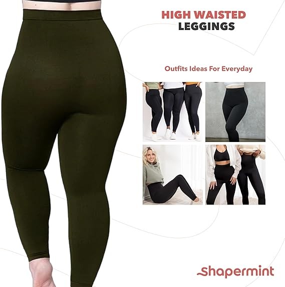 SHAPERMINT Leggings for Women Tummy Control - High Waisted Leggings for Women Plus Size, Thick Non-See-Through