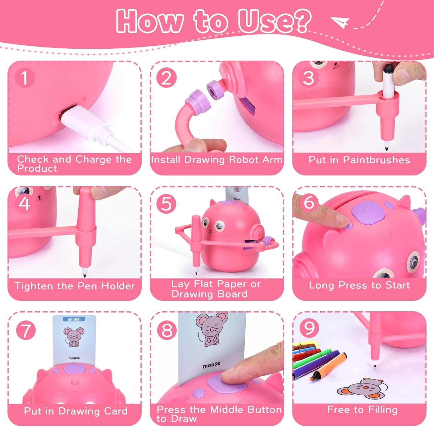 Smart Drawing Robot for Kids with 100 Cards – Voice-Activated Educational Art & Creativity Toy, Montessori Learning Machine for Boys & Girls Ages 3-9 for Toddlers & Children (Pink)
