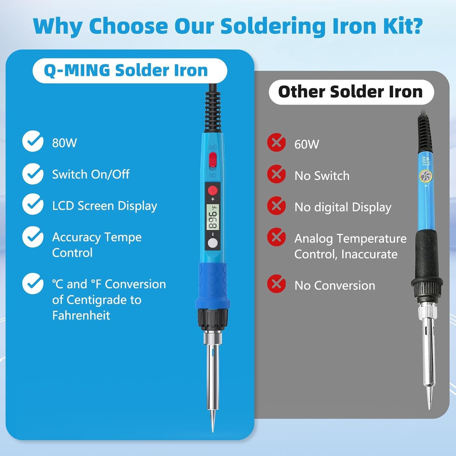 Soldering Iron Kit, 80W 110V LCD Digital Solder Iron Pen with Ceramic Heater, Portable Welding Tools with 5pcs Tips, Stand, Solders Wire, Sponge, Paste, for Metal,Electric Repairs, DIY