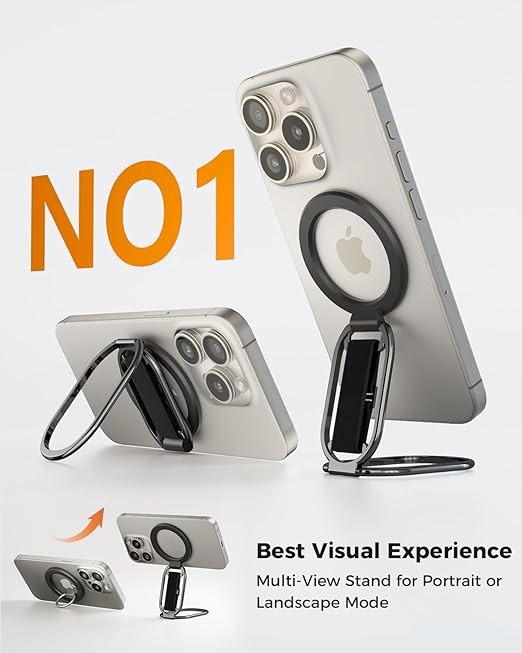 SUPERONE for MagSafe Phone Grip for MagSafe Kickstand Compatible with Mag Safe Finger Loop, 4-in-1 Phone Ring Holder Strap for Mag Safe iPhone 17/16/15/14/13/12 Series, Black [2025 Version]