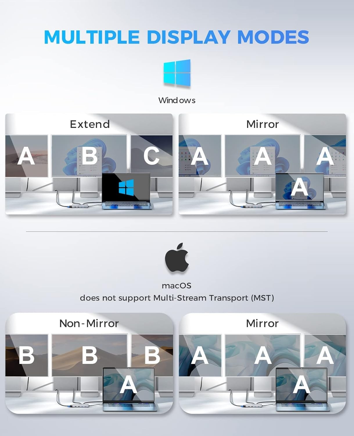 USB C Docking Station Dual Monitor, UtechSmart 11 in 1 USB C Hub Triple Display, Laptop Dock with 2 HDMI, Ethernet, VGA, 100W PD, SD/TF Card Slot, 4USB for MacBook Dell HP Surface Lenovo ASUS