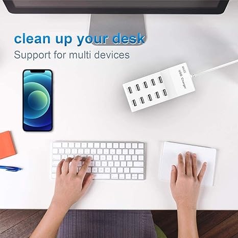 USB Charging Stations 50w10A 10 Ports Multiple Charging Block/Power USB Strip for iPhone Android Smartphone Tablet Smart Watch AirPods Samsung and Multiple Charger Plug…